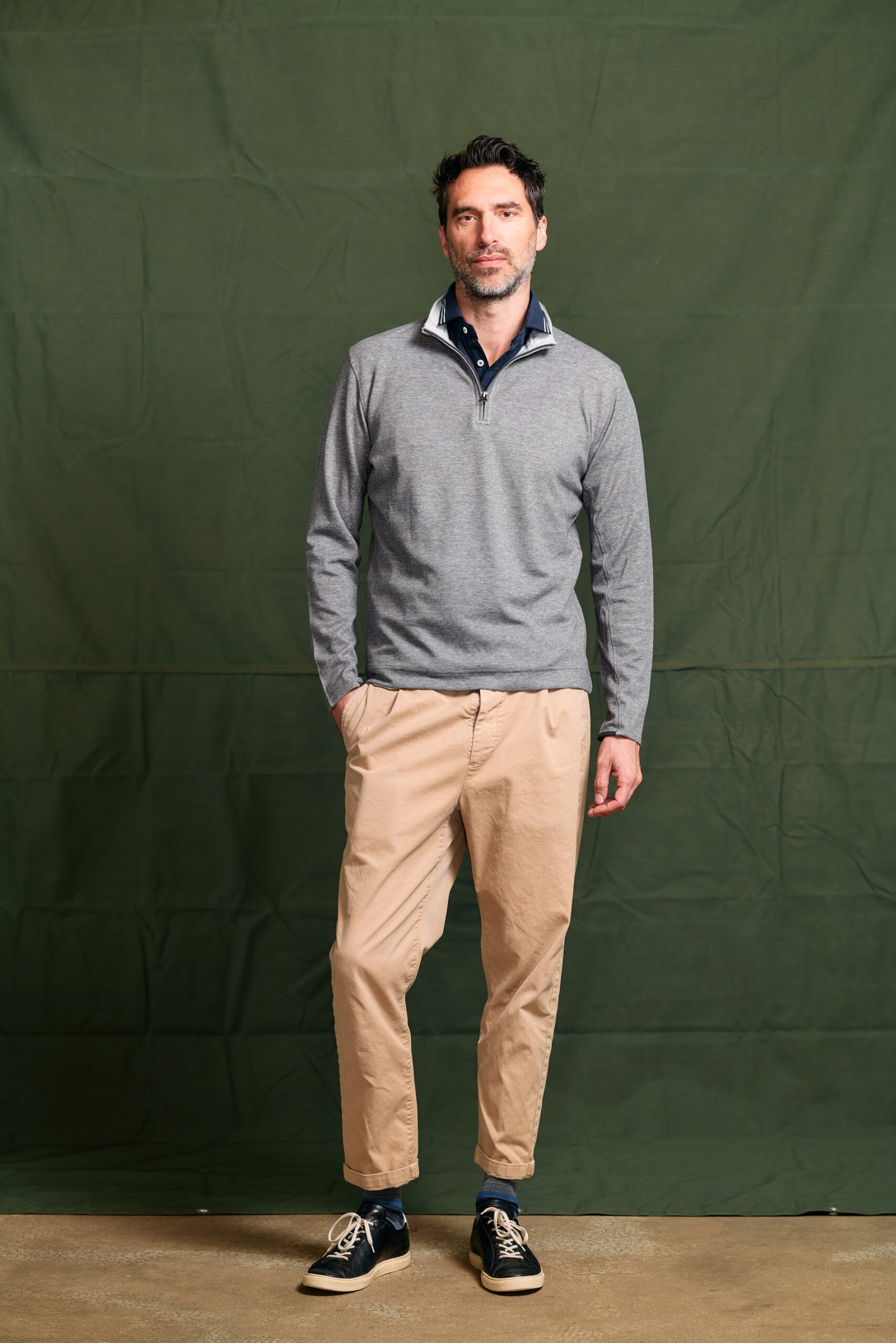 An elevated essential designed for layering and year-round versatility. This men’s 1/4 zip pullover features a subtle heathered stripe pattern that adds depth and refinement to a classic silhouette. Crafted from a mid-weight performance knit, it delivers breathable warmth with just the right amount of stretch for comfort and mobility. The quarter-zip neckline allows for adjustable ventilation, while the streamlined fit makes it easy to wear over a polo or under a jacket. Polished yet relaxed, this pullover transitions seamlessly from the course to casual outings or travel days.